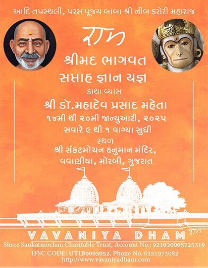 Vavaniya Dham, a wonderful Neeb Karori Baba temple, is located in the serene village of Vavaniya, Gujarat. From a small temple to a sprawling campus, this sacred site has flourished by Maharajji's grace. Jai Gurudev!