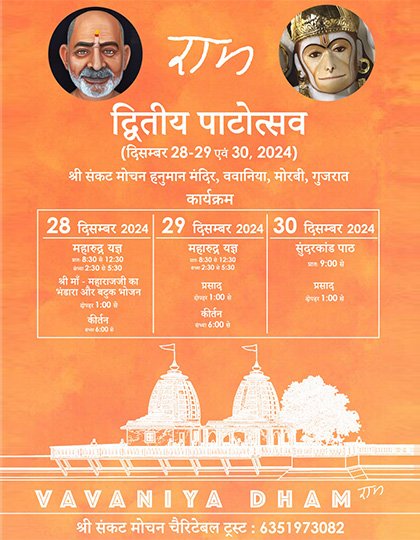 At Vavaniya Dham, devotion meets service through various community initiatives and charitable programs. Whether it’s the communal meals offered to visitors or the spiritual discourses that inspire faith, every aspect of this dham reflects a commitment to uplifting humanity. Come and experience the divinity and peace that make Vavaniya Dham truly special.